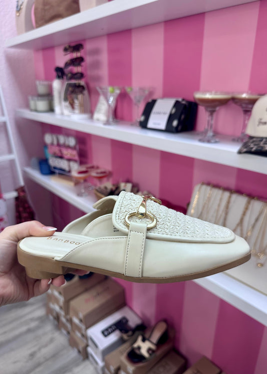 Coastal Luxe Raffia Gold Bit Mule